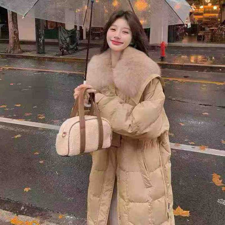 48.8元清韩系高级感大毛领大长款棉服,数量1000件,码数M-2XL,单款3色,黑...