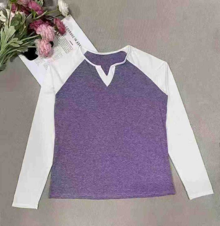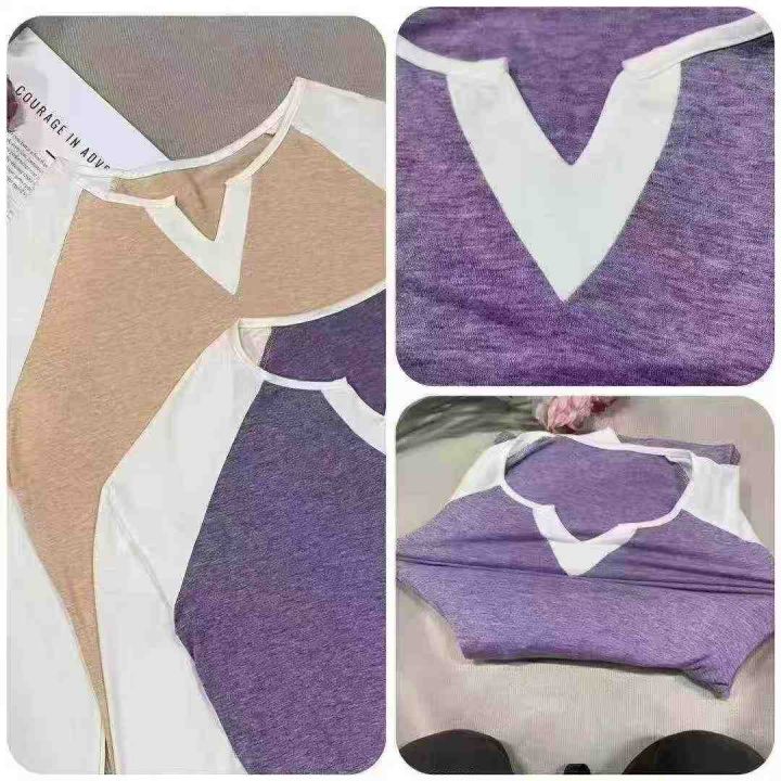 450多件辣妹撞色v领插肩袖时尚气质休闲百搭t恤上衣 ,...