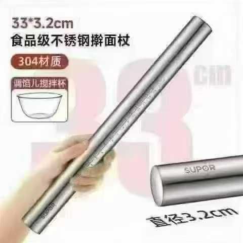 苏泊尔擀面杖,304不锈钢材质,长度33厘米,900根,独...