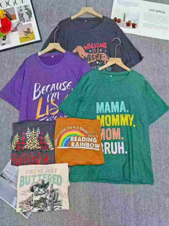 工厂回收3200件男女同款宽松印花短袖T恤,码数S-5XL。面料柔软舒适有弹力,直接款式都很不错,面料手感好有分量,货品干净整齐,全部独立包装。分货加0.5