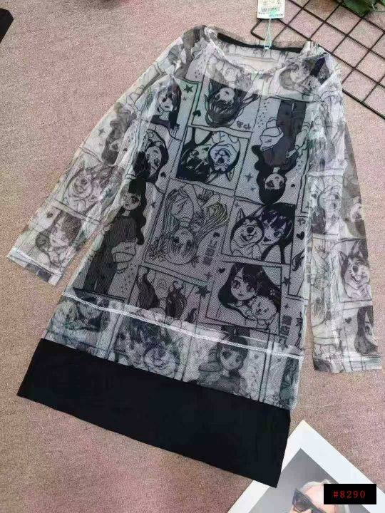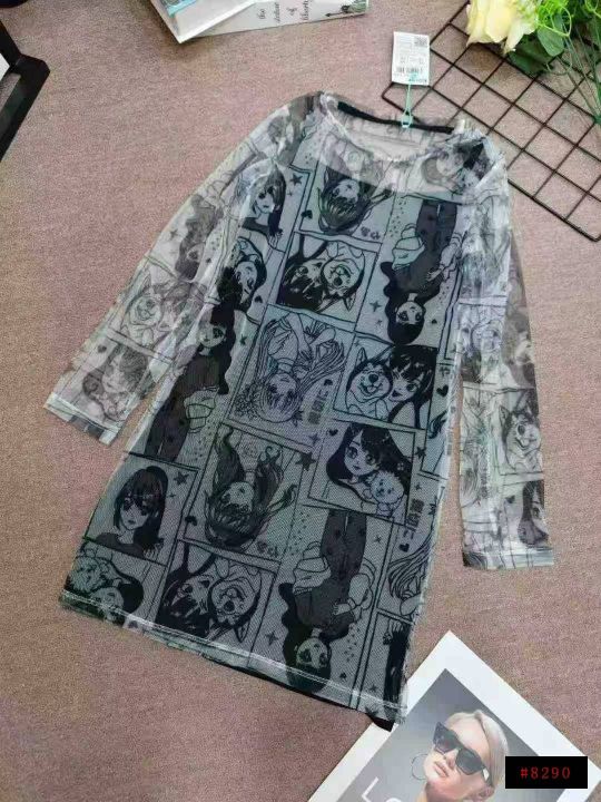 二次元风格薄纱中大童连衣裙,纯棉内胆吊带,1800件,货品干净无瑕疵,独立包装带吊牌,码数:7--12码,6.8清。@_@