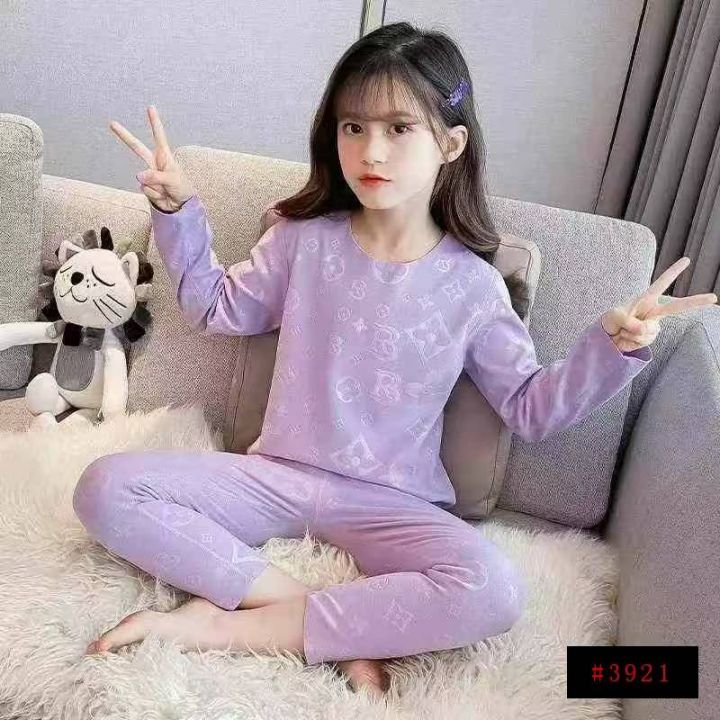 [月亮]:潮童压花满印德绒家居保暖打底套装