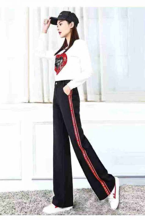 天猫精选250条 新款运动阔腿裤高腰垂感侧边条纹休闲裤,面料绵纶加氨纶 高...
