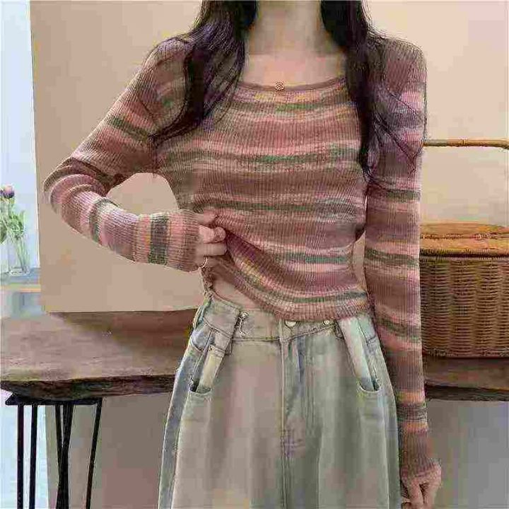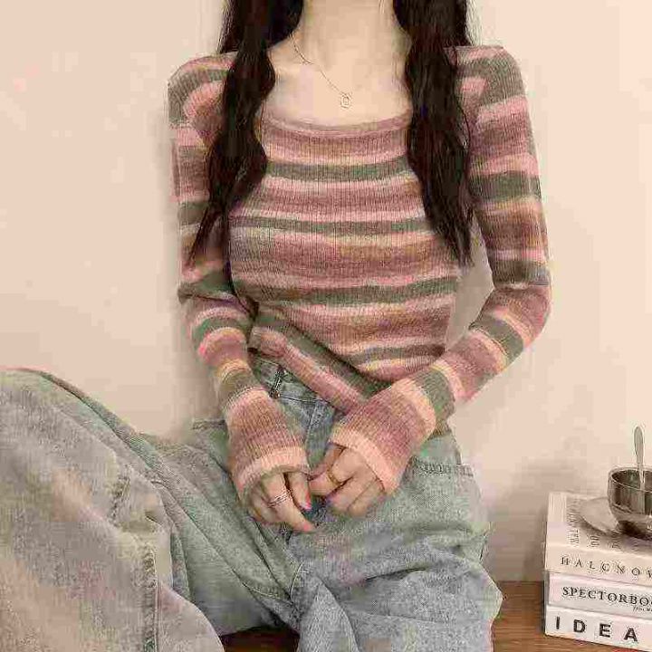 320件法式春秋季修身显瘦条纹长袖针织衫上衣,独立包...