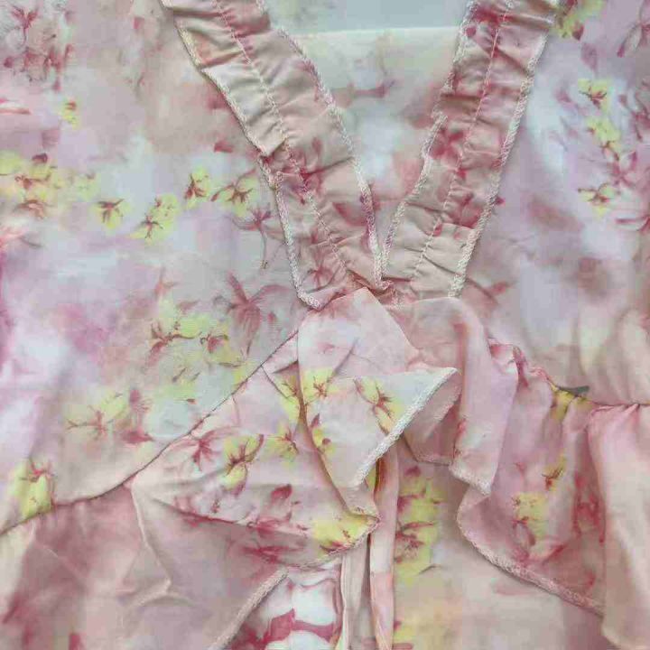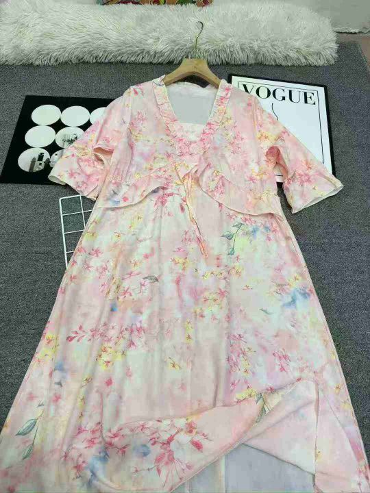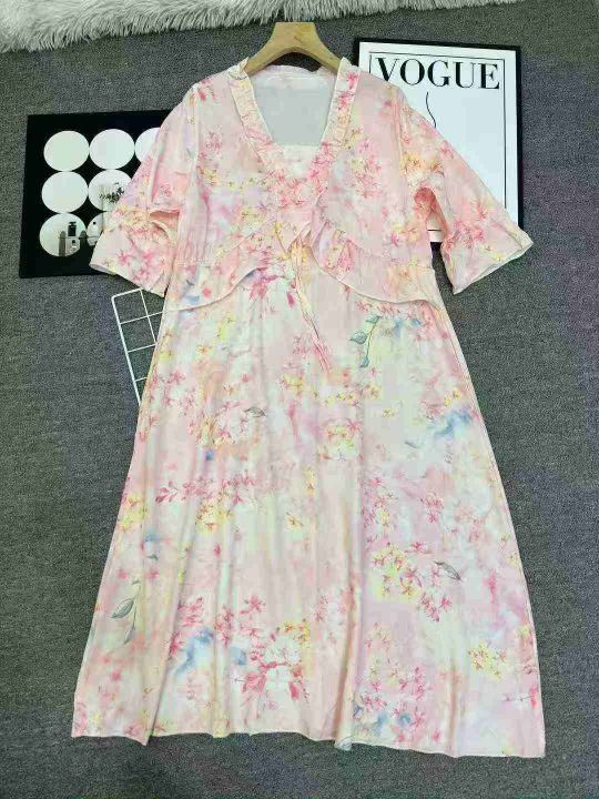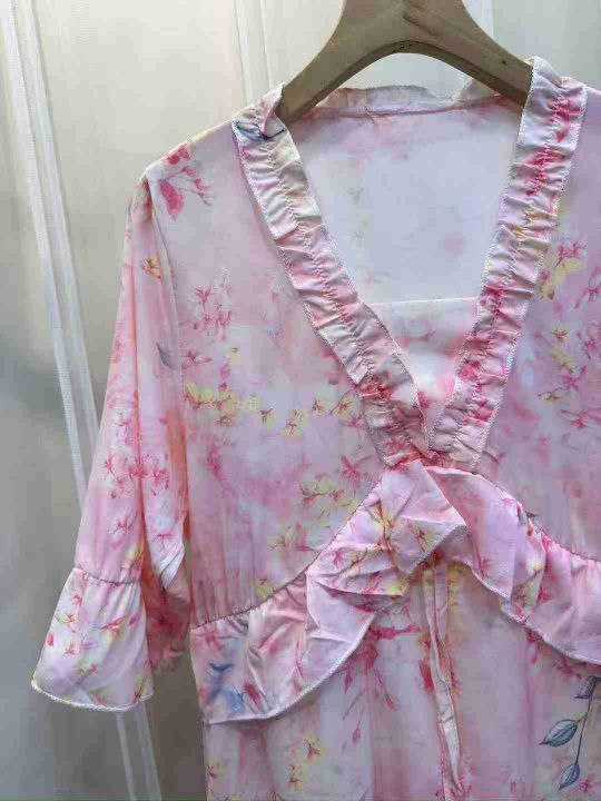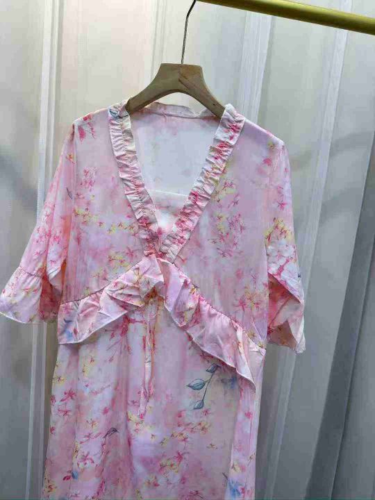 度假绵绸,V领连衣裙遮肉收腰时尚粉色减龄气质长裙通勤,独立包装,码数1234mlxlxxl,数量2840件,全清6.5元,分货➕1