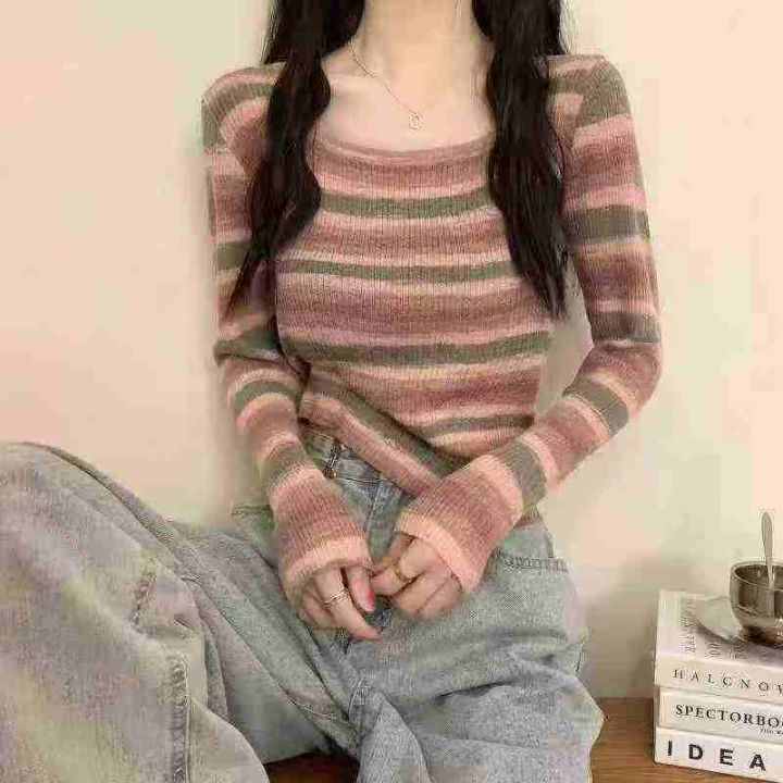 320件法式春秋季修身显瘦条纹长袖针织衫上衣,独立包装,均码单款两色,超低7.8元清分货十一[庆祝][庆祝]