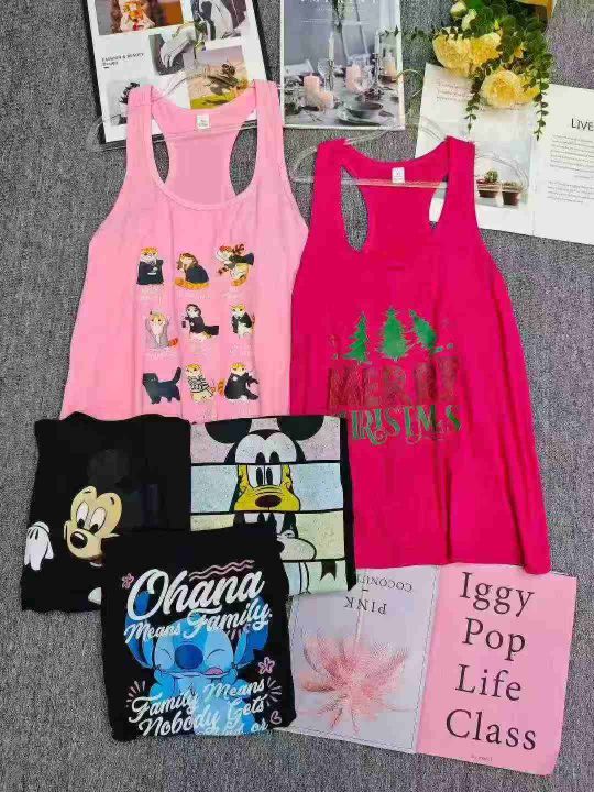 电商仓回收1600件韩系休闲夏季靓妹卡通印花背心,码数S-2XL。面料柔软有弹性,舒适好穿,有独立包装。分货➕0.5