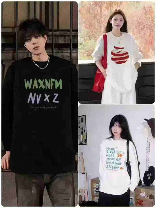 天猫仓回收1383件早秋重磅纯棉200克长袖字母印花T恤上衣,码数S-2XL。后领包边到肩,版型质量超级好,100%纯棉,印花丰富多样,还有很多好看的没拍到,全部独立包装,分货➕ 1