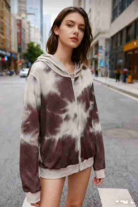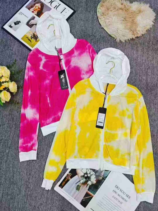 天猫仓回收4264件多巴胺扎染轻薄款针织衣休闲连帽拉链外套,均码可穿80-130斤。吊牌价688元,版型很好。质量款式非常好,全部独立包装带吊牌,分货➕1