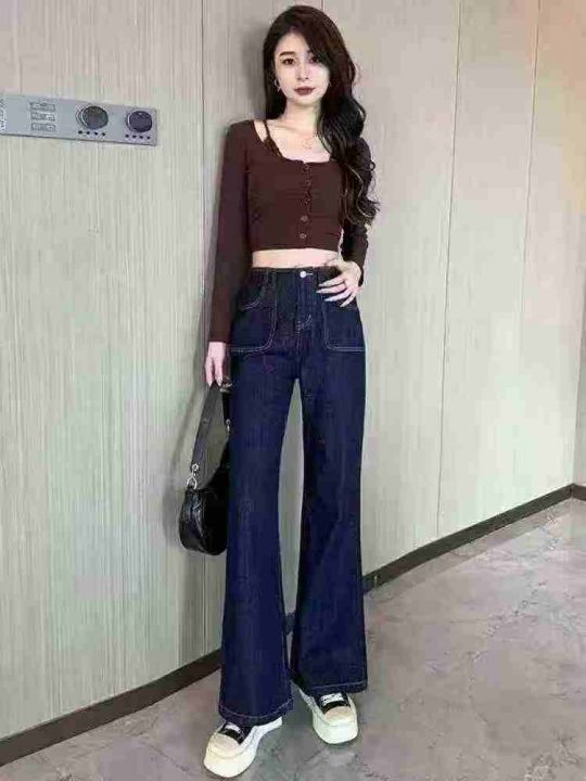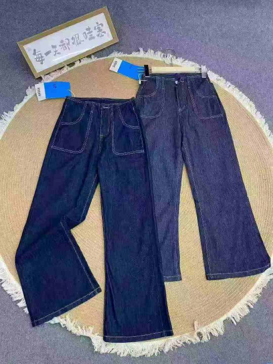 复古蓝微喇牛仔裤288件9.5,春秋高腰显瘦,裤头包边,...