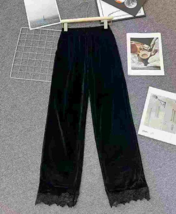 ☕️黑色金丝绒阔腿裤女秋冬加绒加厚直筒裤慵懒高腰显瘦休闲裤,带蕾丝裤脚150条,纯色基础款1019条 一起全清12.8元 分货+1元