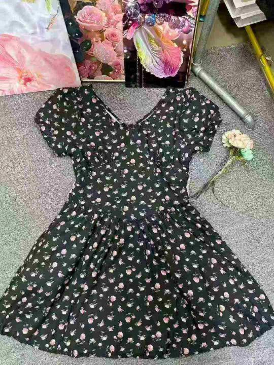 法式复古桔梗碎花连衣裙2025夏季新款蝴蝶结收腰显瘦a字裙,单款单色,2.3.4.5码,独立包装,货品干净,2630件,7.9清,分货加1
