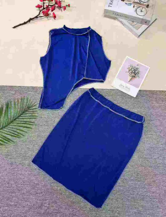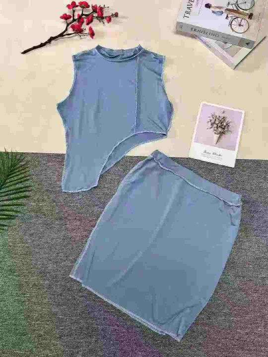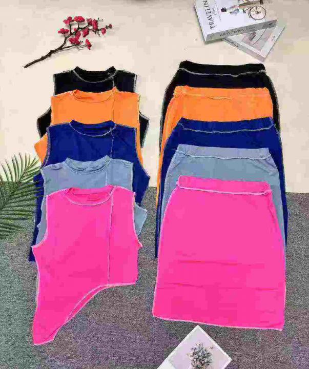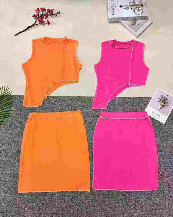 欧美洋气不规则线条无袖上衣+线条半身裙两件套,整款多色,数量:253套,码数:S-2XL,品质好,有独立包装。