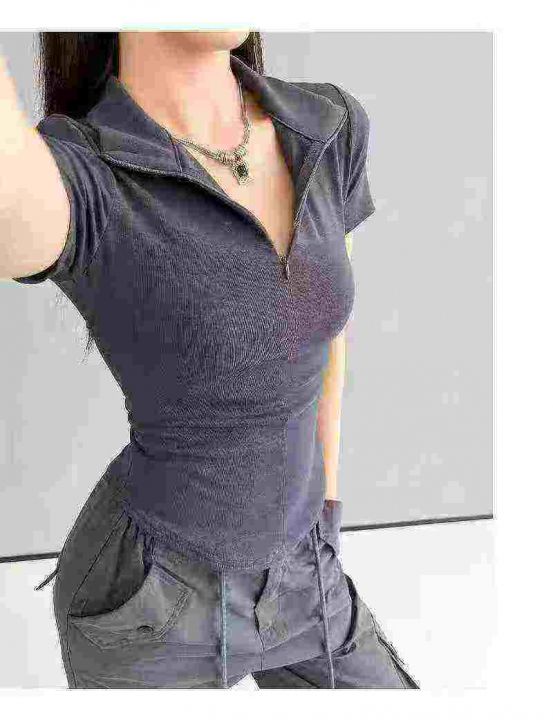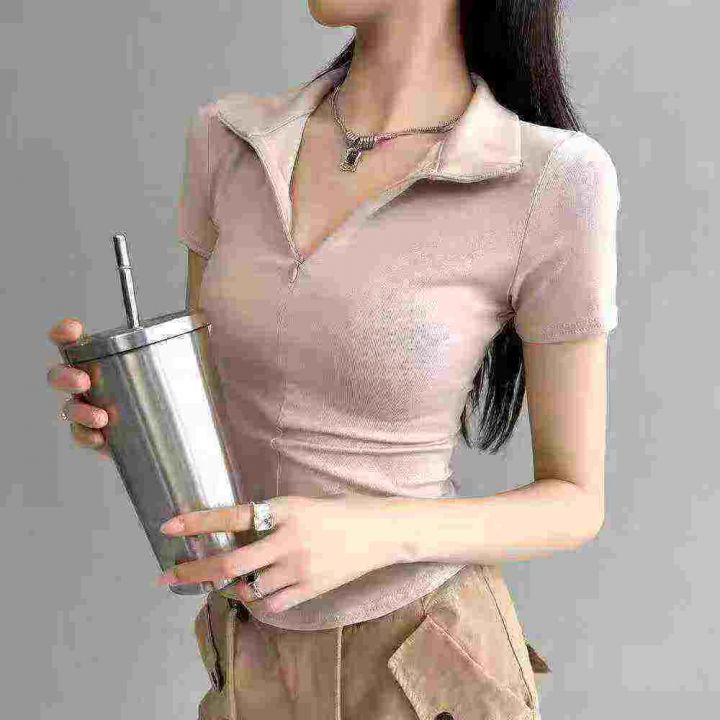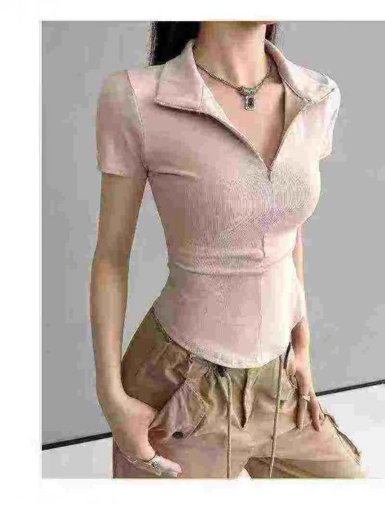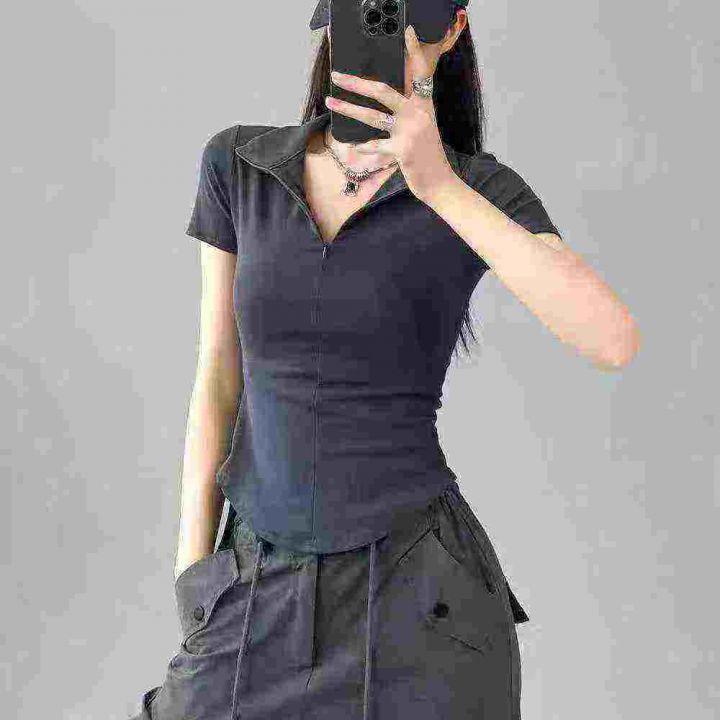 [發]纯欲拉链翻领辣妹短袖体恤170件