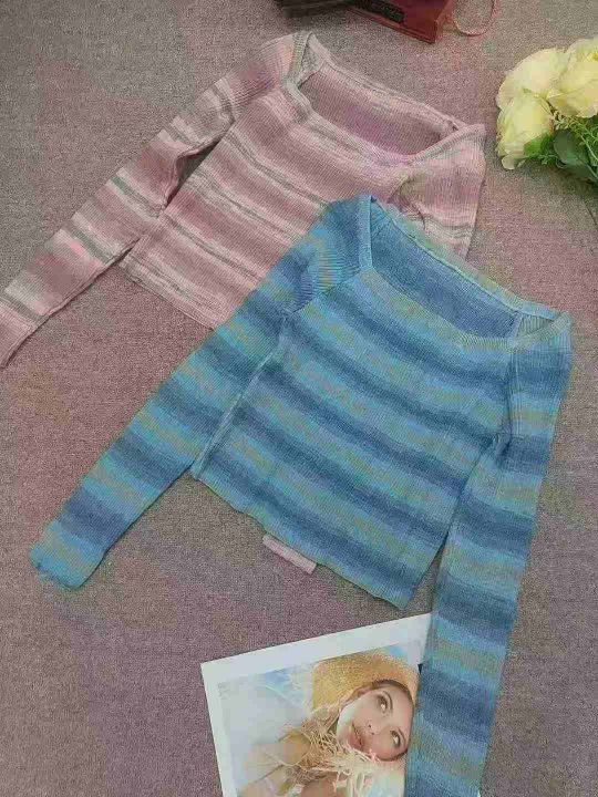 320件法式春秋季修身显瘦条纹长袖针织衫上衣,独立包装,均码单款两色,超低7.8元清分货十一[庆祝][庆祝]