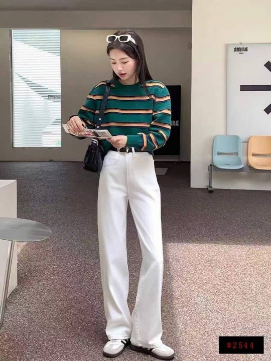 [月亮]:小个子休闲直筒窄版白色牛仔裤