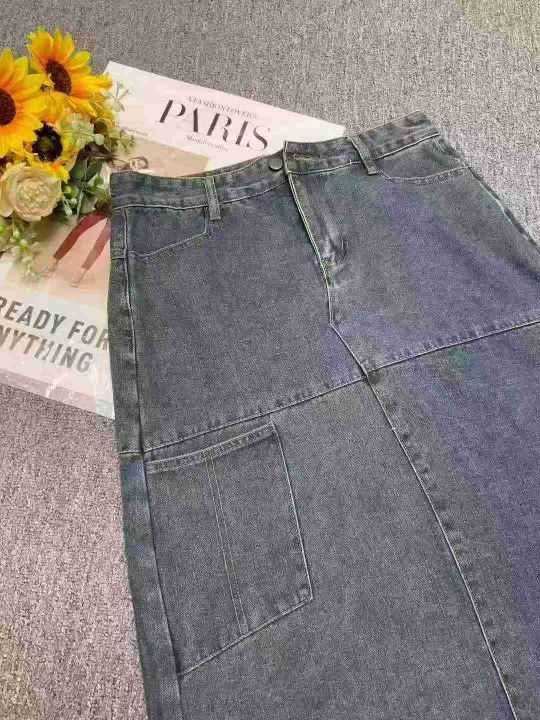 春秋新款大码女装洗水棉网红复古蓝牛仔半身长裙,独立包装带吊牌,码数XL-5...