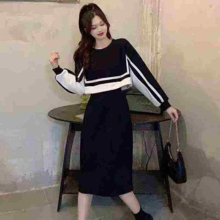 韩版设计感黑白撞色拼接收腰显瘦连衣裙,[爱心]40件左右,码数S-XL,长款为主,穿80-130斤,万佳档口货,原包装️无瑕疵,[666]实体店品质,分货加一