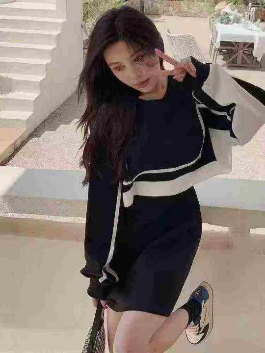 上新全清:12.8一件韩版设计感黑白撞色拼接收腰显瘦连...