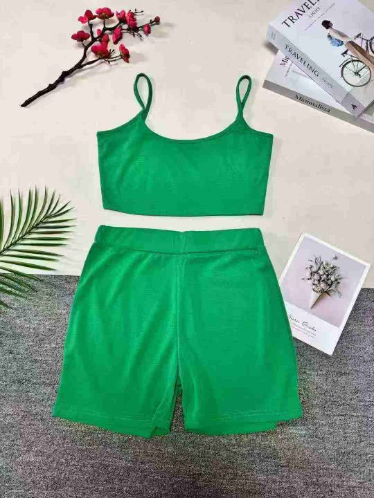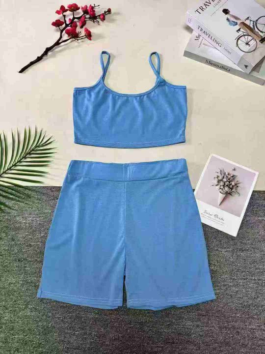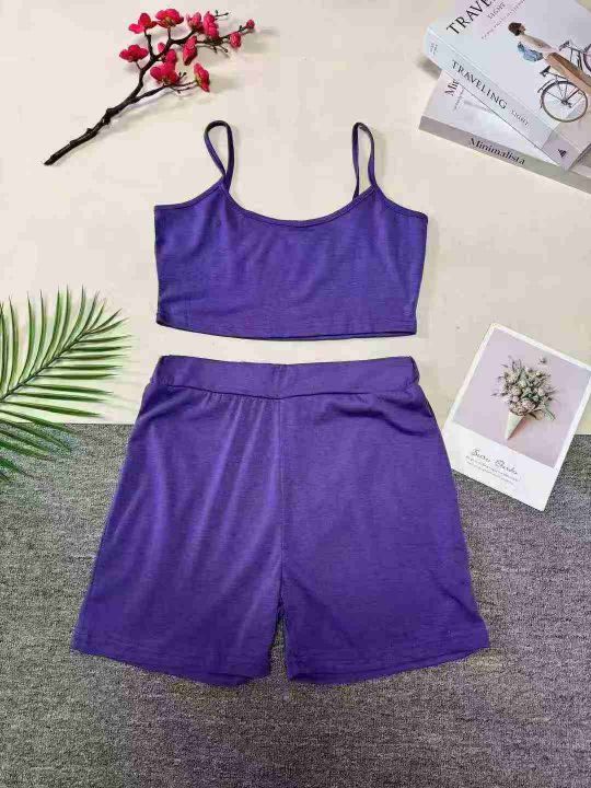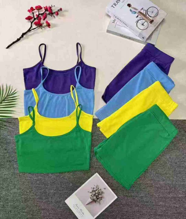 欧美洋气性感吊带上衣+短裤两件套,整款四色,数量:228套,码数:S-2XL,品质好,有独立包装。