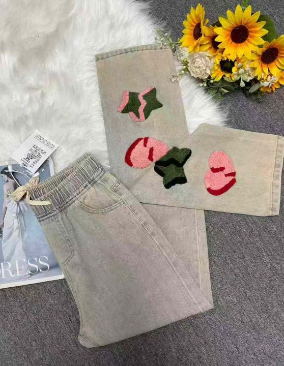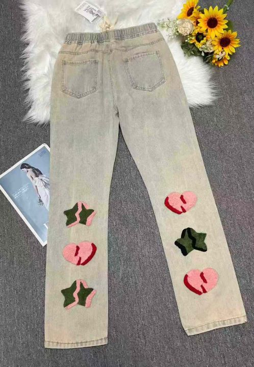 春秋新款国潮美式高街潮牌黄泥染星星植绒刺绣男士小众直筒松紧腰牛仔裤,独立包装带吊牌,码数M-3XL码,170件左右,全清8.8元超低价秒杀!