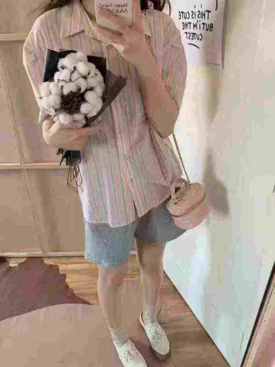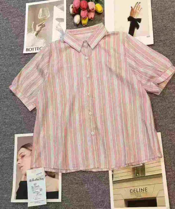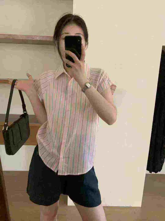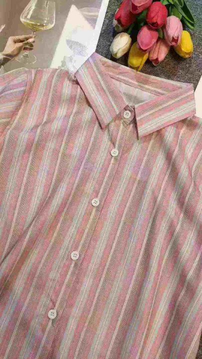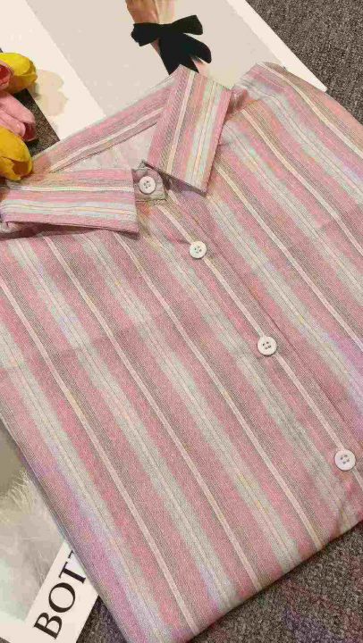 多巴胺粉色条纹温柔别致百搭衬衫,[爱心]110件左右,码数S-XL,穿80-140斤,万佳档口货,原包装️无瑕疵,[666]实体店品质,分货加一