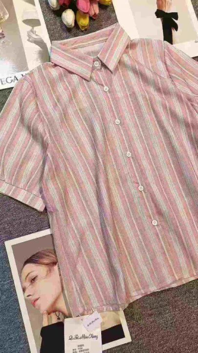 上新全清:9.9一件多巴胺粉色条纹温柔别致百搭衬衫,[...