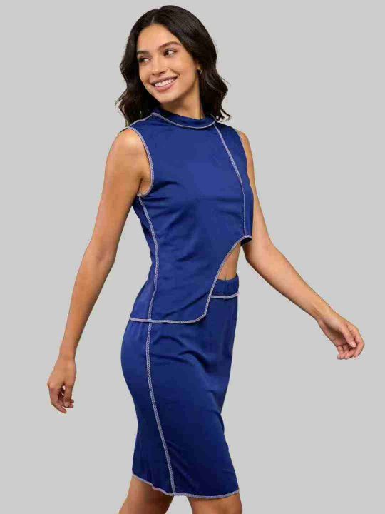 7.5清2077款欧美洋气不规则线条无袖上衣+线条半身裙两...