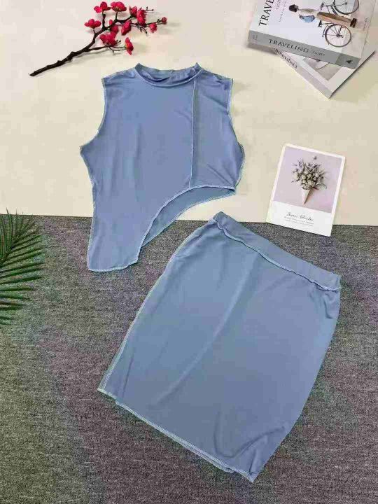 欧美洋气不规则线条无袖上衣+线条半身裙两件套,整款多色,数量:253套,码数:S-2XL,品质好,有独立包装。