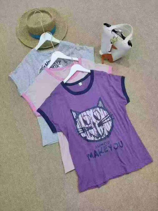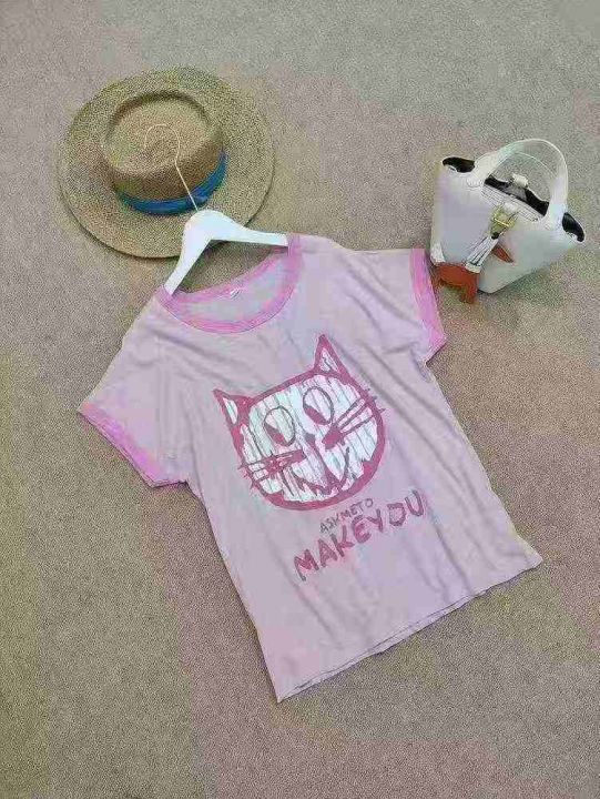 [月亮]:6.9清337件[月亮]:字母猫咪休闲竹节纯棉T恤[...