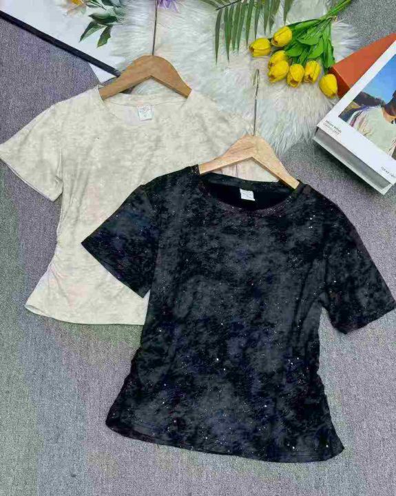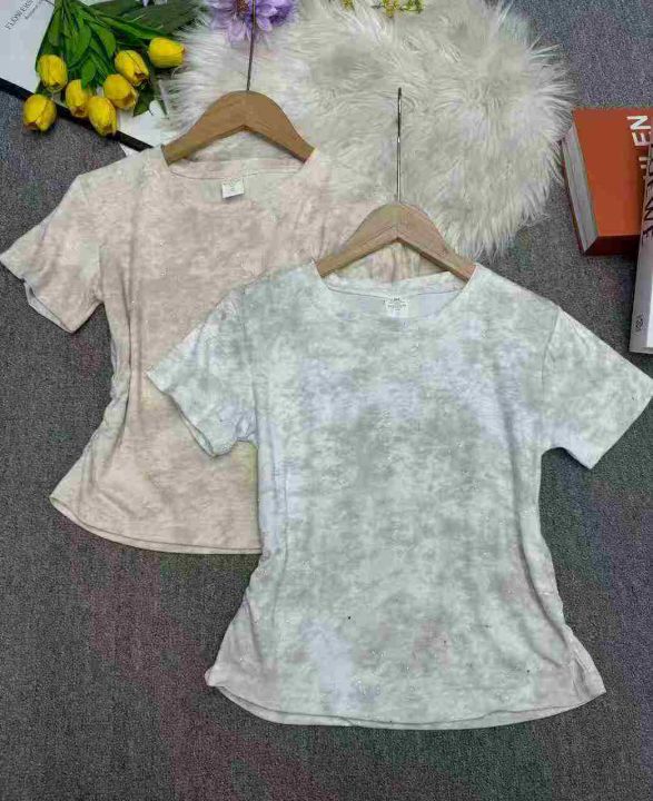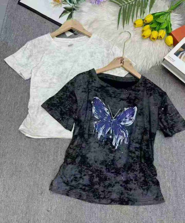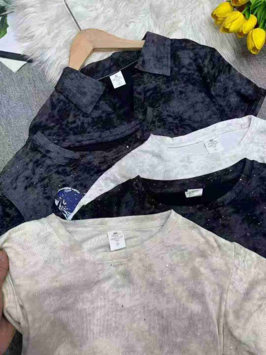 美式烫钻亮片闪闪扎染收腰短袖短款上衣辣妹T,十件一包,弹力大,棉料,后领包边到肩,质量,图片款,图四款为主,数量236件,码数2-5码,货号1215#26