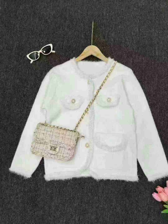 春秋季新款宽松洋气小香风针织毛衣开衫仿水貂外套,小整款,独立包装,均码80-130斤可穿,2100件,全清24.8分货➕1