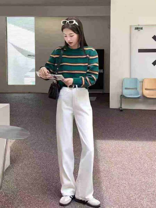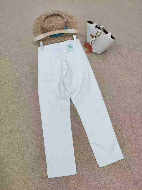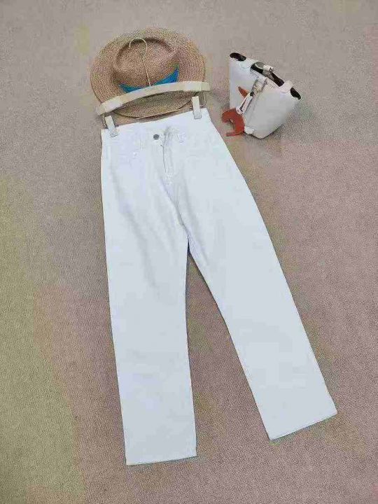 [月亮]:小个子休闲直筒窄版白色牛仔裤