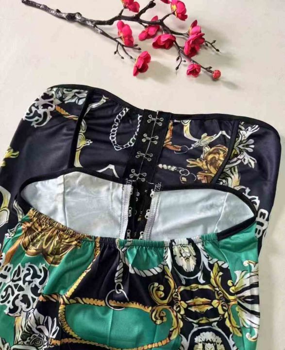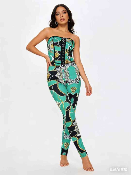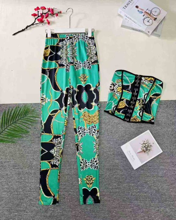 7.5清2095款,欧美性感印花抹胸+紧身长裤两件套,整款...