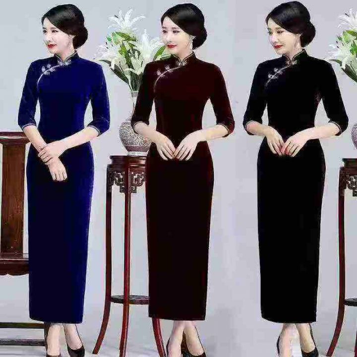 天猫仓回收232件改良金丝绒长款高端礼服复古气质优雅开叉旗袍连衣裙,码数S-3XL。版型质量好,面料柔软有弹性,满满高级感。有独立包装。分货➕1