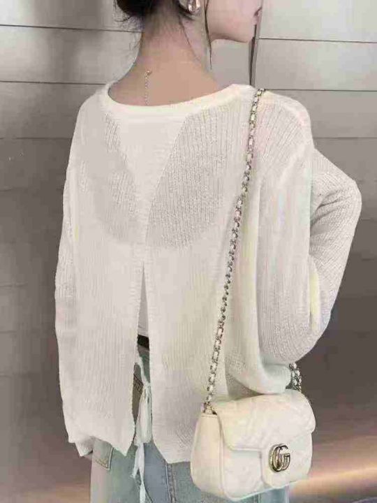 早秋季新品设计款后背开叉绑带镂空时尚长袖针织衫,独...