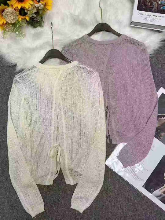 早秋季新品设计款后背开叉绑带镂空时尚长袖针织衫,独立包装,均码面料柔软舒适,320件,全清5.9元超低价秒杀!分货加一!