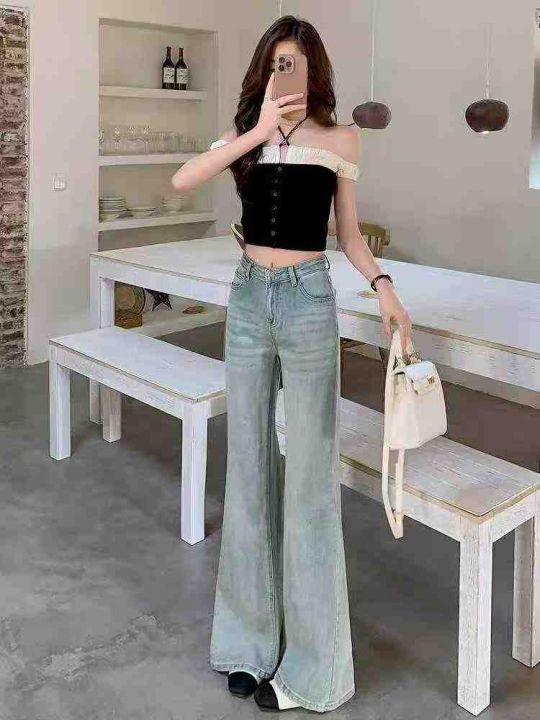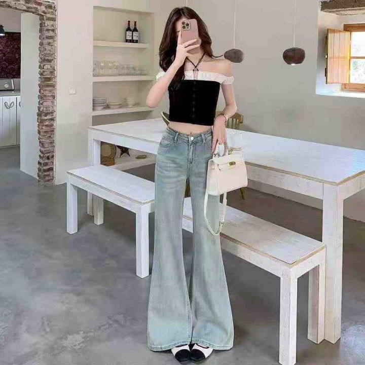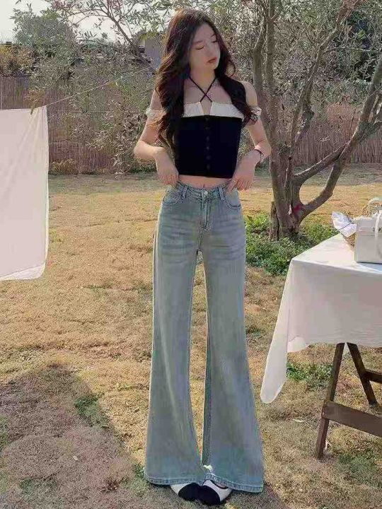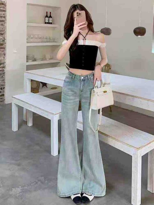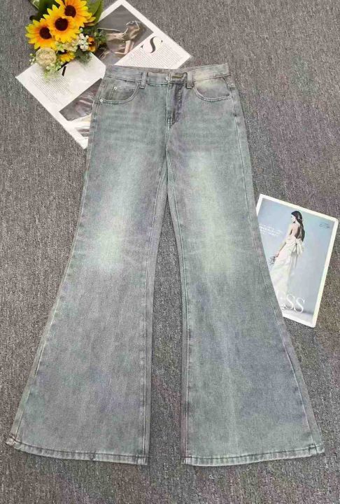 春秋季新品洗水棉网红爆款牛仔阔腿喇叭裤,独立包装带...