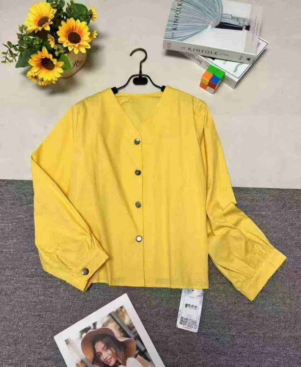 超好看独特漂亮黄色气质V领减龄洋气长袖上衣,单款单色,品质好,有独立包装带吊牌,均码,数量300件左右,全清5.8元秒。
