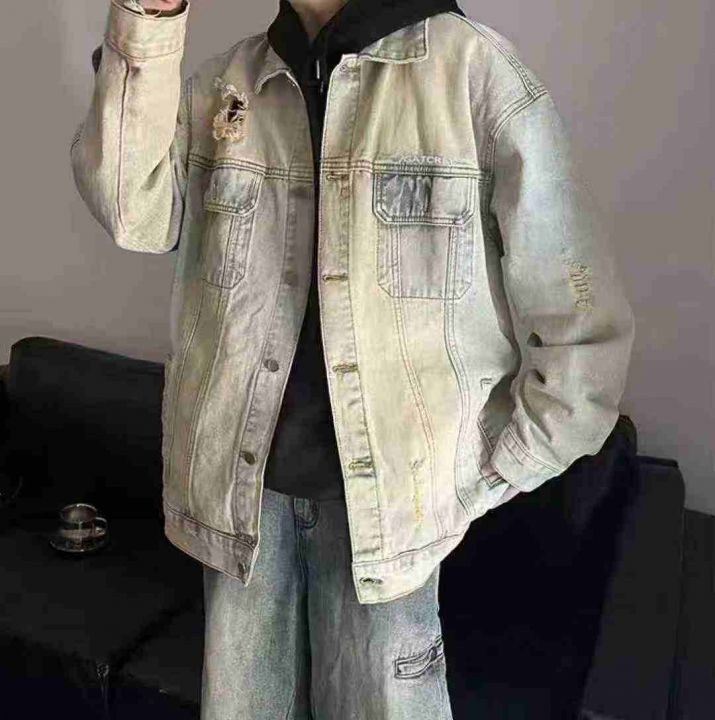 秋季新品洗水棉网红复古做旧男女同款牛仔外套,独立包...