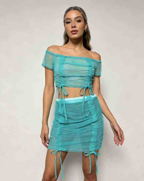 2.5清高级感薄纱半透短袖半身裙性感两件套,整款三色,数量189套,品质好,...