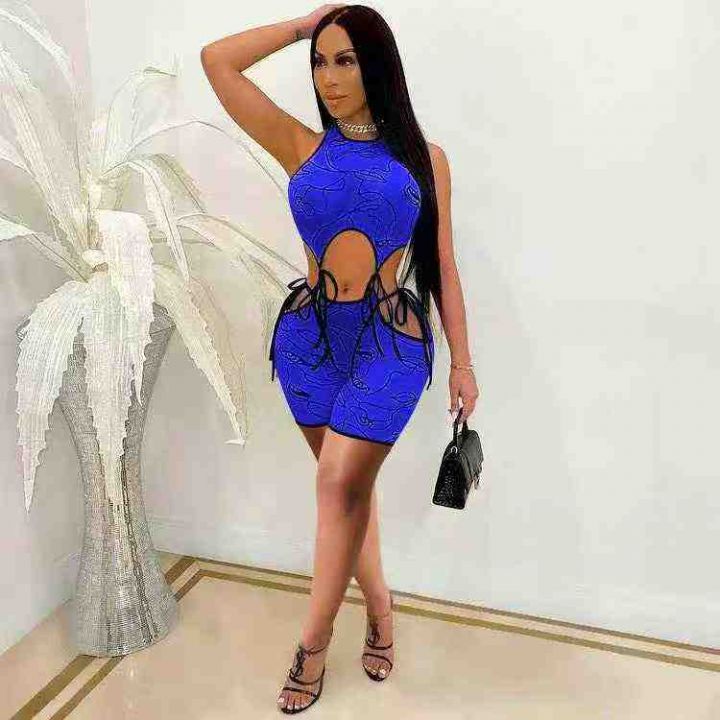 5.8清欧美女印花套装系带短裤套装休闲运动装 ,整款四色,数量:183套,码...