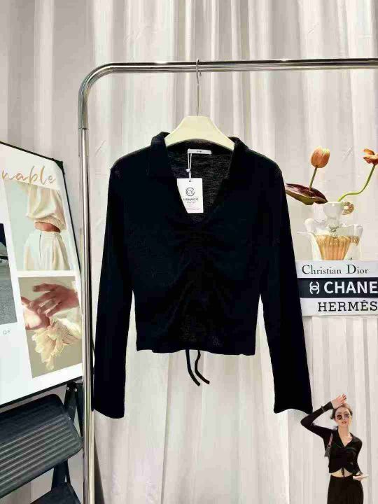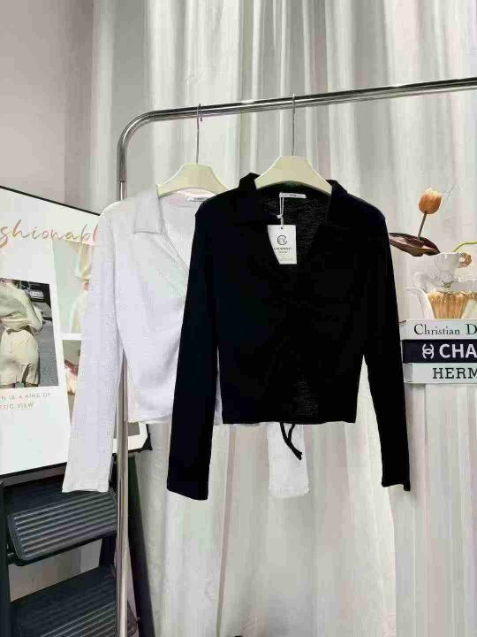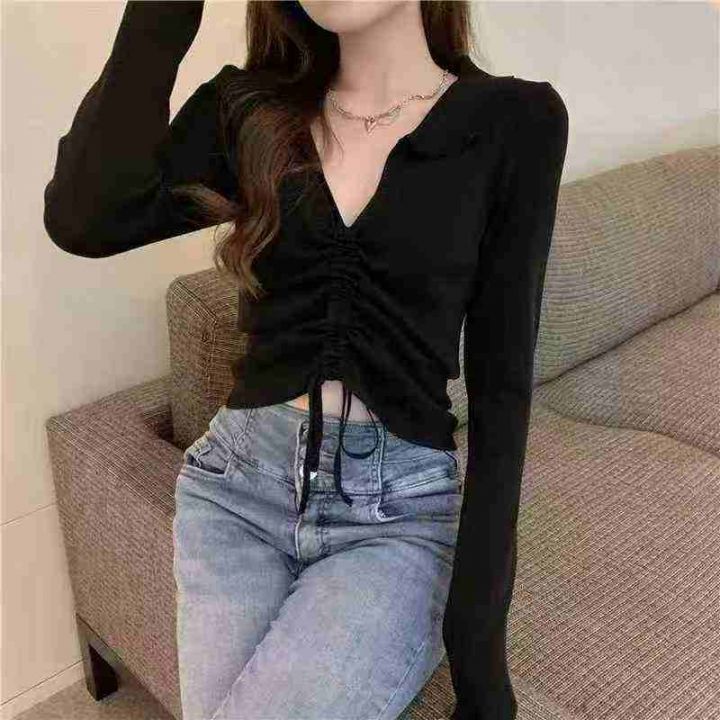 115件长袖t恤女辣妹炸街减龄v领polo针织衫内搭抽绳短款高腰露脐上衣潮,尺码S-XL,独立包装!高弹力,全清8.8