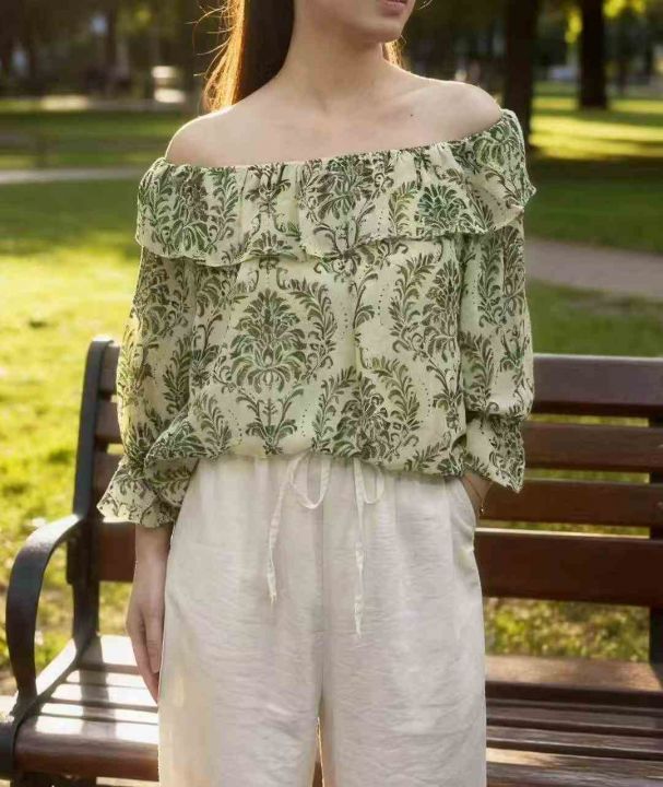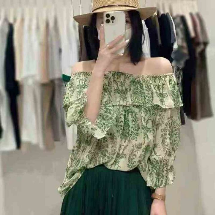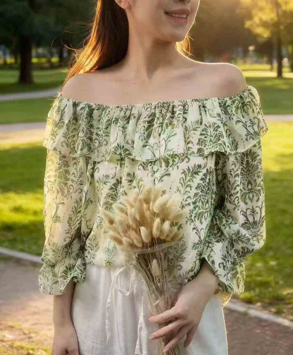 雪纺复古上衣321件7.8,一字领荷叶边,可多种穿法,面...