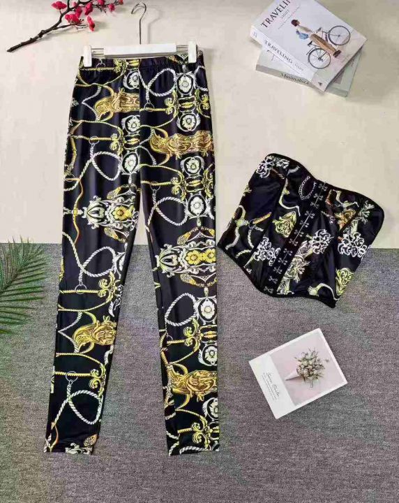 欧美性感印花抹胸+紧身长裤两件套,整款两色,数量:151套,码数:S-2XL,品质好,有独立包装