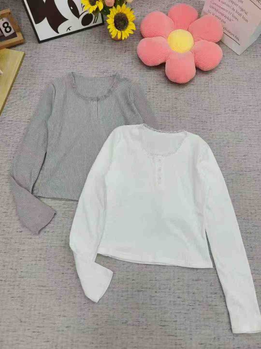 [發]蕾丝纽扣长袖打底332件独立包装 码数1到4 白色多灰色少领口花边设计...