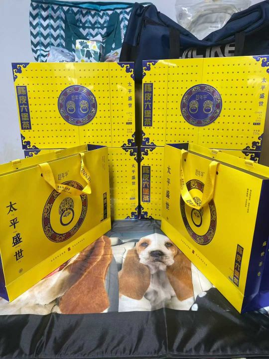 陈皮六堡茶,采用新会陈皮精选六堡茶完美配比,口味浓醇香,适合大众口味、每盒重量220克,(44小包):保质期15年,礼盒高端大气上档送礼佳品,看中联系