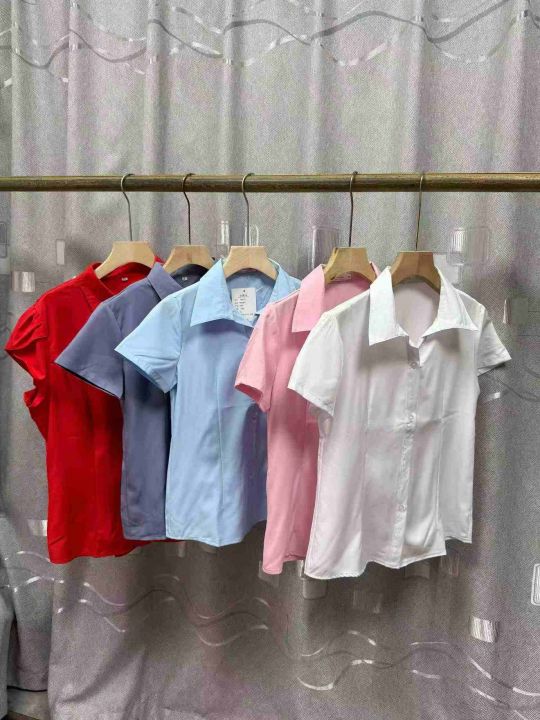 新款春夏季短袖衬衫百搭修身衬衣女正装翻领纯色韩版衬衫,独立包装,S -3 XL码,500件左右。全清4. 8块,分货加一