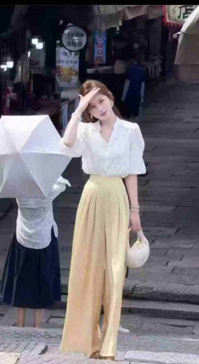 韩系通勤时尚气质休闲V领设计高腰松紧直筒裤两件套套装 独立包装 码数1-3码...