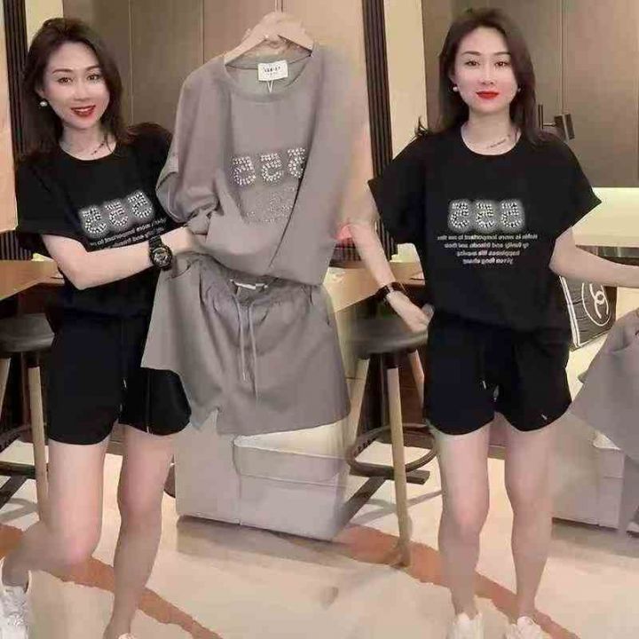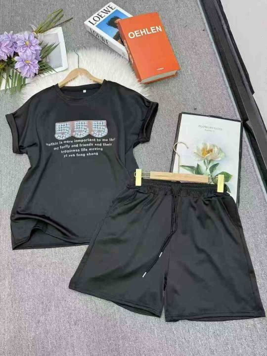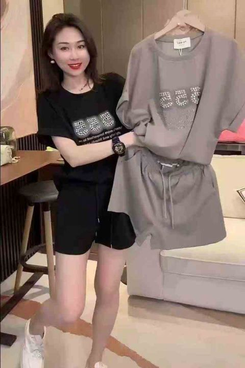 2025夏韩版洋气宽松时尚运动套装短袖T恤抽绳短裤,243件,1-4码 分货➕1(黑色套装为主,中间码多)独立包装 模特图及供参考(货号1129#63)